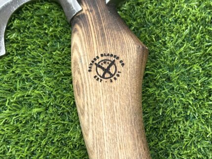 “To maintain your Savage Blade Axe and protect it from rust, it’s important to oil both the blade and the guard after each use. High-carbon steel can rust when exposed to moisture, oils, or dirt, and the guard, typically made of brass or steel, is also vulnerable to corrosion. After cleaning the axe, apply a thin coat of mineral or camellia oil to both the blade and the guard to create a protective barrier. This will help prevent rust and preserve the knife’s functionality and appearance. Store the axe in a dry place, and incorporate oiling into your regular maintenance routine for long-lasting performance”