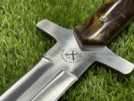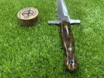 The pommel at the end of the handle may feature a simple but decorative brass or steel accent, providing a finishing touch that enhances the knife’s overall aesthetic and ensures additional durability.