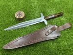 This Hunting Dagger comes with a custom leather sheath, hand-stitched for durability and designed for ease of use. The sheath features a belt loop, making it easy to carry the knife securely while hiking, hunting, or camping. Its rugged leather design complements the Hunting Dagger’s traditional appearance, offering both protection for the blade and convenience when transporting the knife.