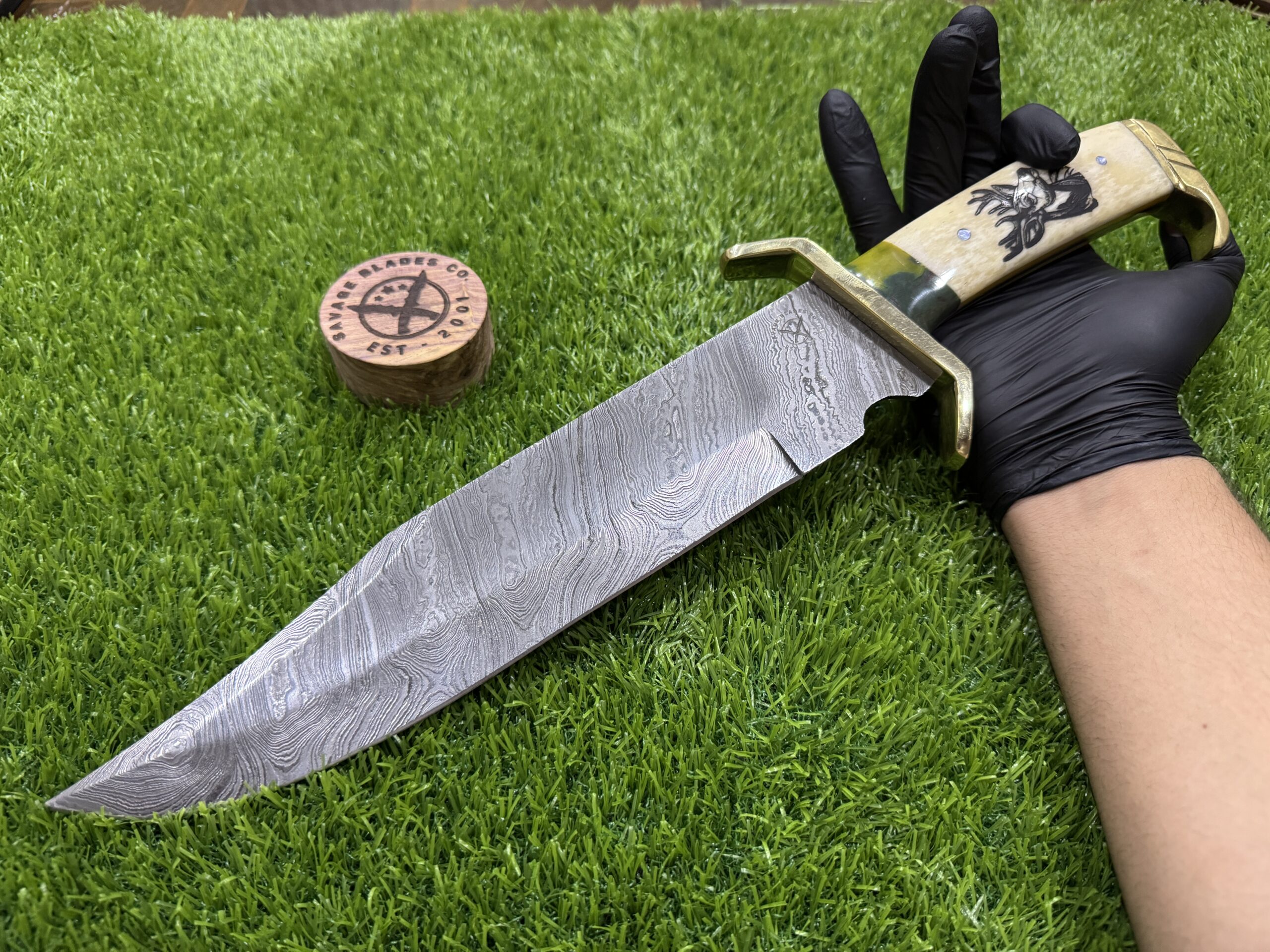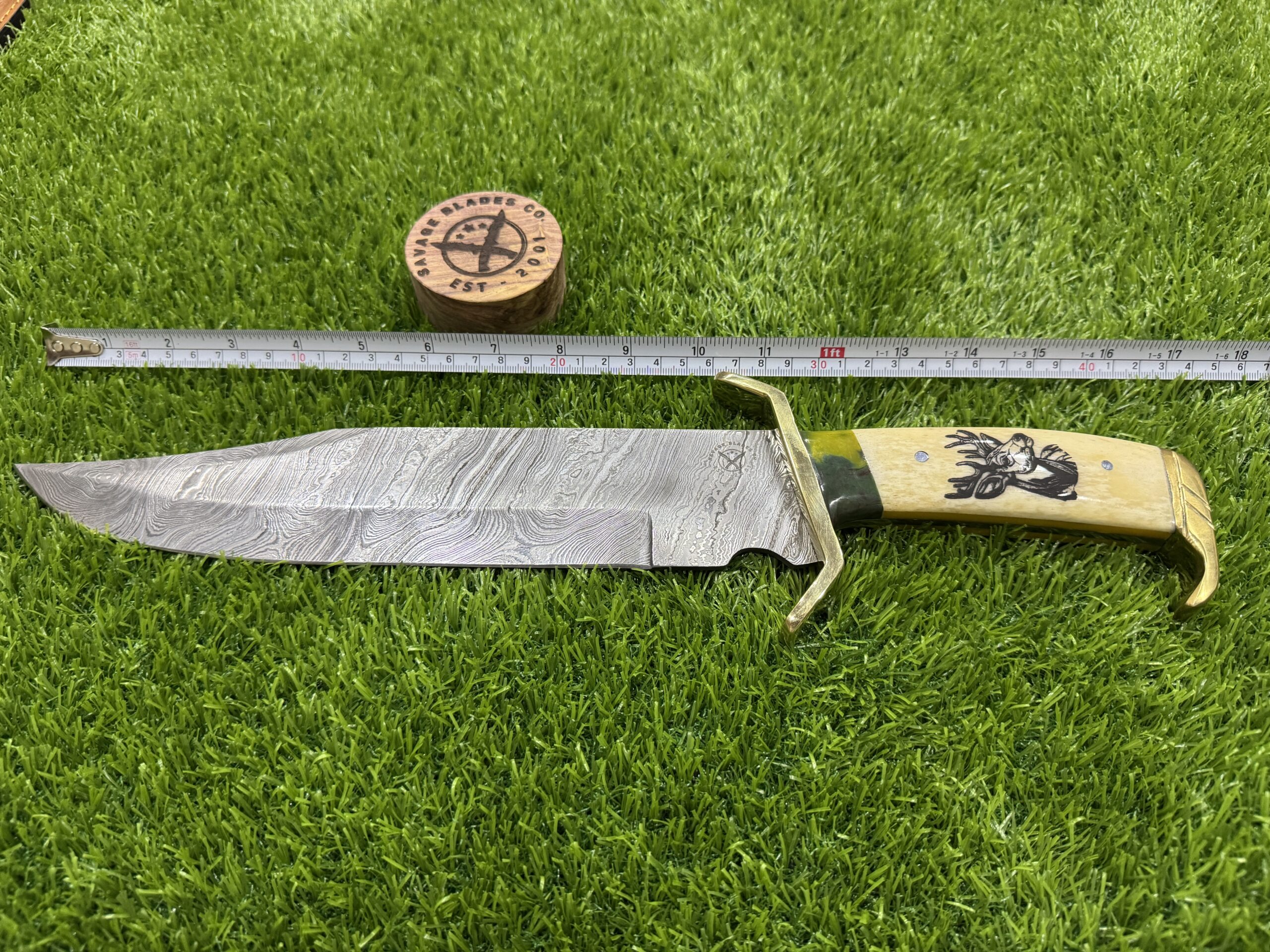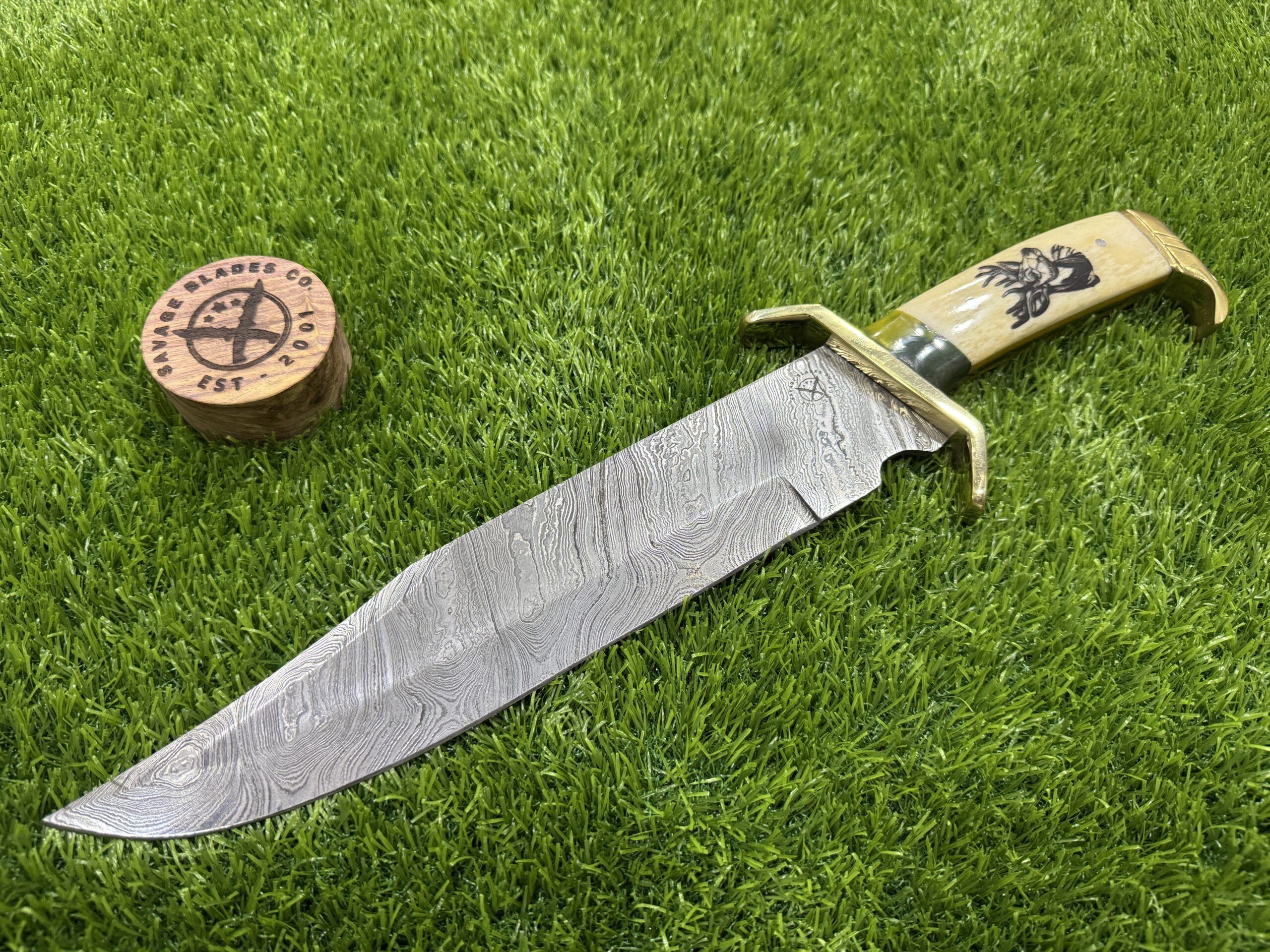 This 15-inch Hunting Damascus Bowie with White Bone Handle from Savage Blade is a standout combination of style and performance. The knife’s white bone handle gives it a classic, clean look, while the high-quality blade ensures it is a reliable companion in the outdoors. Whether you’re a hunter, a survivalist, or a knife enthusiast, this Bowie knife offers unmatched durability, cutting power, and elegance—making it a valuable addition to any collection or gear.