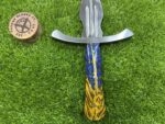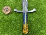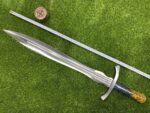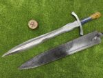 This sword comes with a custom leather sheath, hand-stitched for durability and designed for ease of use. The sheath features a belt loop, making it easy to carry the knife securely while hiking, hunting, or camping. Its rugged leather design complements the sword’s traditional appearance, offering both protection for the blade and convenience when transporting the knife.