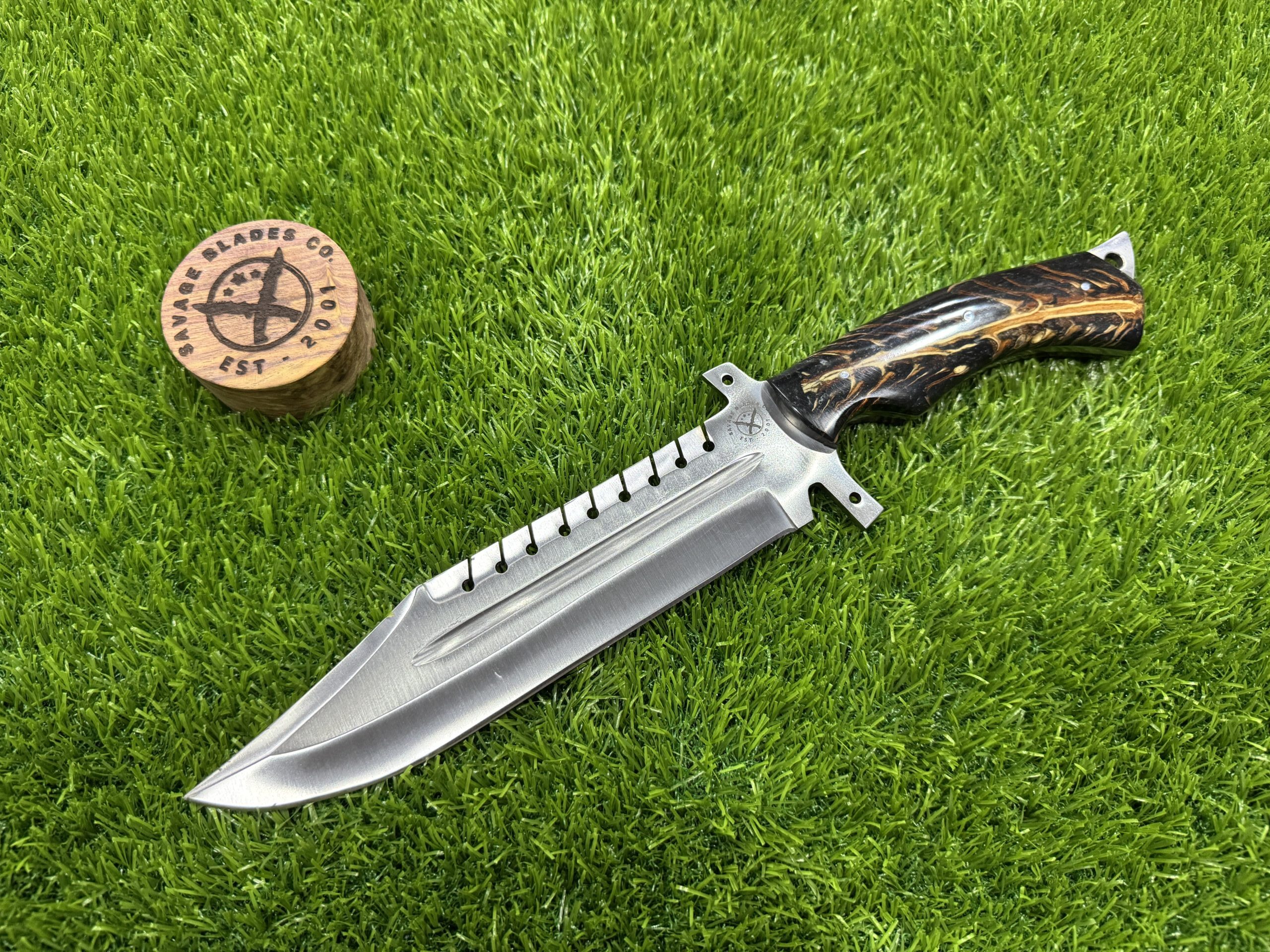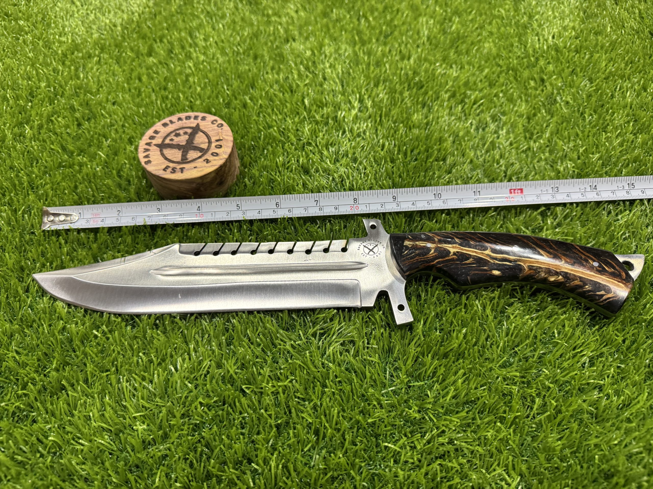 This 15-inch Hunting Bowie Knife from Savage Blade is a commanding tool designed for strength, precision, and durability. With its full tang construction, the knife offers exceptional stability and balance, making it perfect for outdoor tasks such as hunting, survival, and camping.