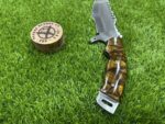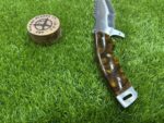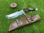 This knife comes with a custom leather sheath, hand-stitched for durability and designed for ease of use. The sheath features a belt loop, making it easy to carry the knife securely while hiking, hunting, or camping. Its rugged leather design complements the knife’s traditional appearance, offering both protection for the blade and convenience when transporting the knife.