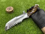 Shape: The blade features the classic Bowie knife shape, with a wide, slightly curved edge ideal for cutting, chopping, and slicing. Its broad surface area also makes it effective for skinning or heavy-duty tasks like splitting wood.