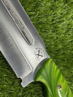 The pommel at the end of the handle may feature a simple but decorative brass or steel accent, providing a finishing touch that enhances the knife’s overall aesthetic and ensures additional durability.