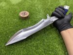 The pommel at the end of the handle may feature a simple but decorative brass or steel accent, providing a finishing touch that enhances the knife’s overall aesthetic and ensures additional durability.
