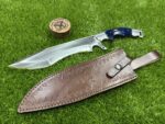 This knife comes with a custom leather sheath, hand-stitched for durability and designed for ease of use. The sheath features a belt loop, making it easy to carry the knife securely while hiking, hunting, or camping. Its rugged leather design complements the knife’s traditional appearance, offering both protection for the blade and convenience when transporting the knife.