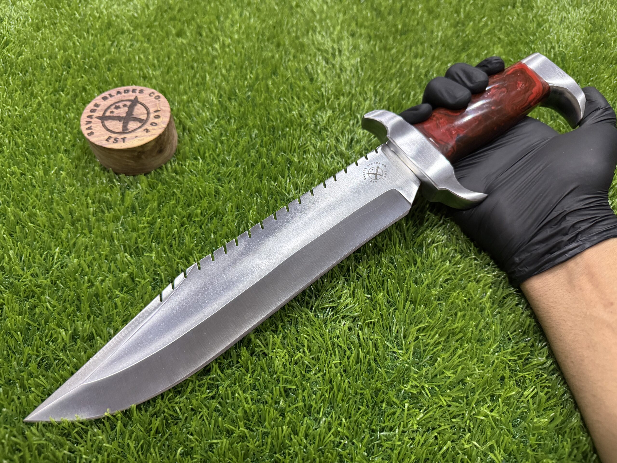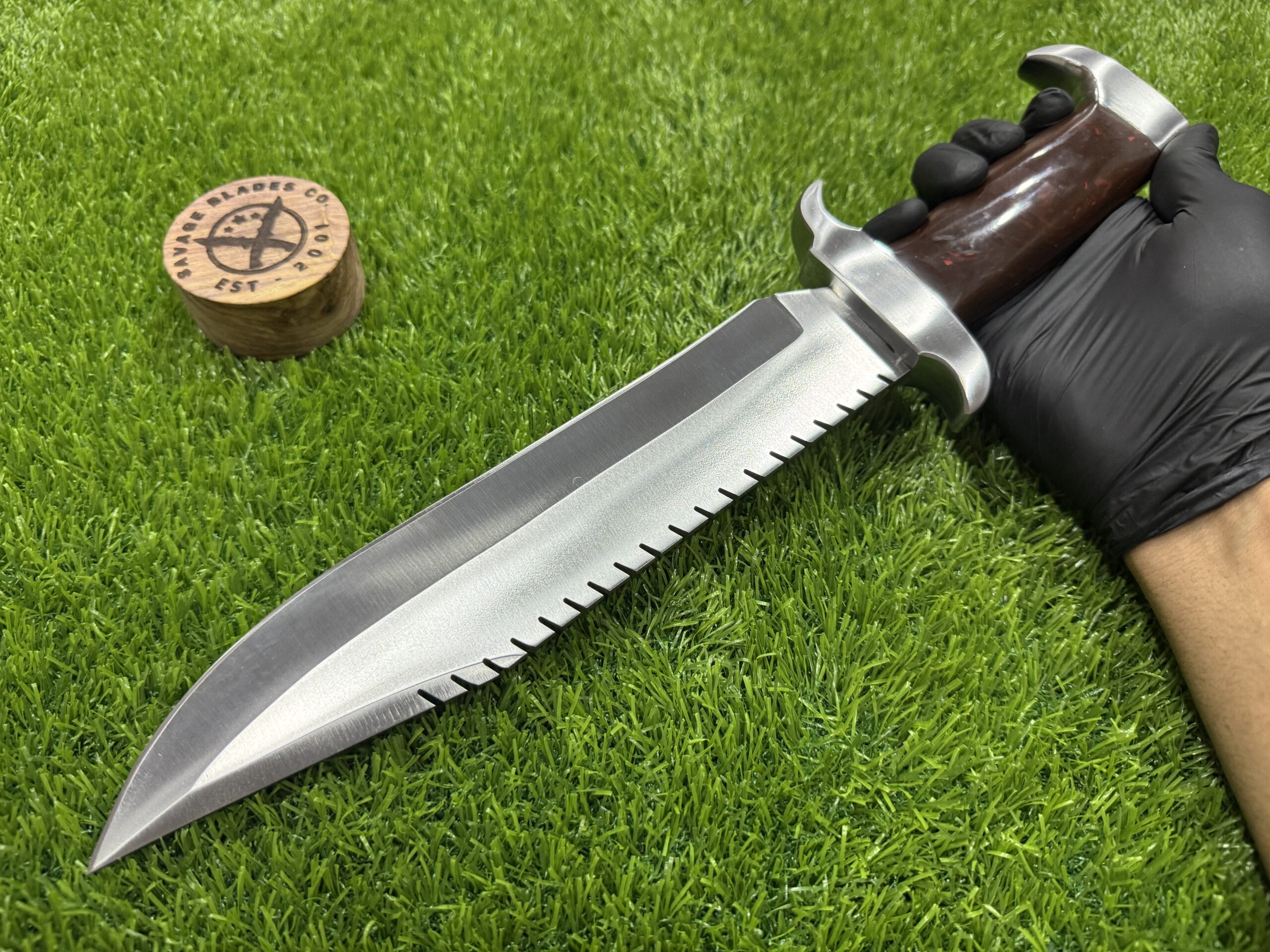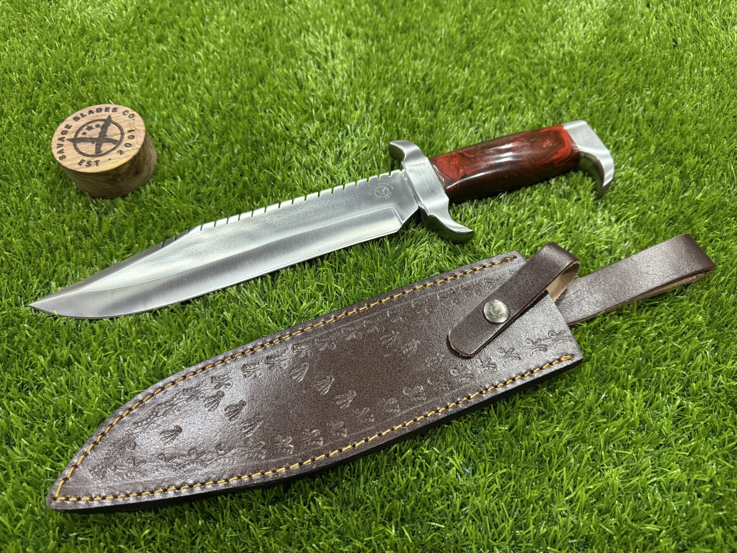 This 15-inch Hunting Bowie Knife from Savage Blade is a commanding tool designed for strength, precision, and durability. With its full tang construction, the knife offers exceptional stability and balance, making it perfect for outdoor tasks such as hunting, survival, and camping.