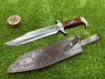 This knife comes with a custom leather sheath, hand-stitched for durability and designed for ease of use. The sheath features a belt loop, making it easy to carry the knife securely while hiking, hunting, or camping. Its rugged leather design complements the knife’s traditional appearance, offering both protection for the blade and convenience when transporting the knife.