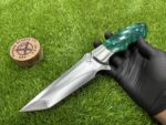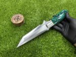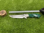 This knife comes with a custom leather sheath, hand-stitched for durability and designed for ease of use. The sheath features a belt loop, making it easy to carry the knife securely while hiking, hunting, or camping. Its rugged leather design complements the knife’s traditional appearance, offering both protection for the blade and convenience when transporting the knife.