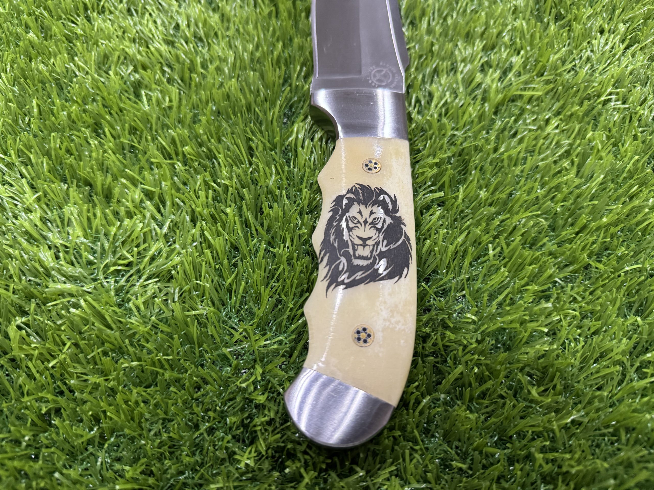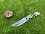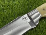 The pommel at the end of the handle may feature a simple but decorative brass or steel accent, providing a finishing touch that enhances the knife’s overall aesthetic and ensures additional durability.