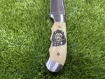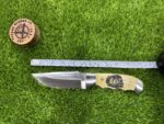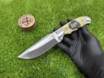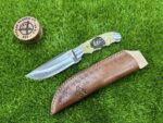 This knife comes with a custom leather sheath, hand-stitched for durability and designed for ease of use. The sheath features a belt loop, making it easy to carry the knife securely while hiking, hunting, or camping. Its rugged leather design complements the knife’s traditional appearance, offering both protection for the blade and convenience when transporting the knife.