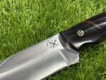 The pommel at the end of the handle may feature a simple but decorative brass or steel accent, providing a finishing touch that enhances the knife’s overall aesthetic and ensures additional durability.
