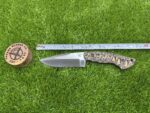 This knife comes with a custom leather sheath, hand-stitched for durability and designed for ease of use. The sheath features a belt loop, making it easy to carry the knife securely while hiking, hunting, or camping. Its rugged leather design complements the knife’s traditional appearance, offering both protection for the blade and convenience when transporting the knife.